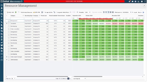 • Period Calculation Columns & Time-Frame Line: Calculate availability, load, and actuals over a defined period directly in the grid.
