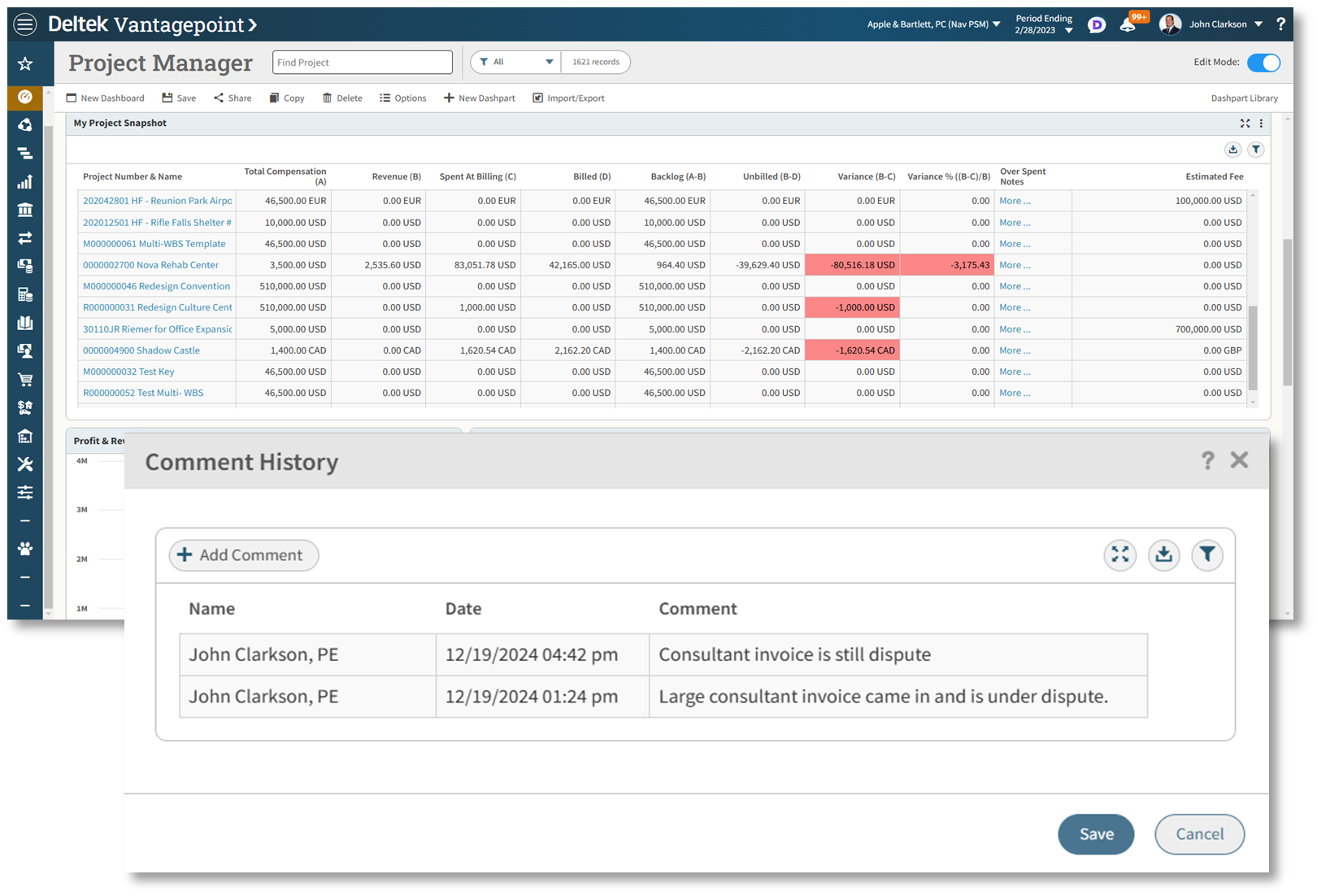 The latest Deltek Vantagepoint release brings powerful enhancements to help you drive better decision-making, improve efficiency, and boost collaboration. With Deltek Clarity metrics now available in your dashboard, you can benchmark your key performance indicators (KPIs) against industry standards and gain valuable insights. Users can also take advantage of AI-powered assistance for faster contact and activity management, along with new features that make team collaboration more seamless than ever.