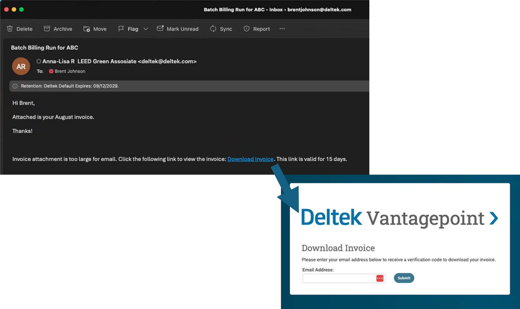 Sharing large invoice files with a client is now more convenient and secure with the new invoice download page. For files too large to send via email, clients can access invoices through a secure, passwordless authentication system. This secure invoice download option simplifies the process and can help expedite cash flow.
