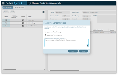 The latest Deltek Ajera release introduced automation of vendor invoice approval processes to accelerate the billing cycle. Route invoices to project managers and financial leaders, eliminating manual processes. Financial teams can set up invoice approval routing rules based on the invoice amount, project or vendor type. Additionally, teams can track the status of invoices to ensure there is no delay in cash flow. This improvement ensures efficiency and accuracy, minimizing delays and errors in the invoicing process.