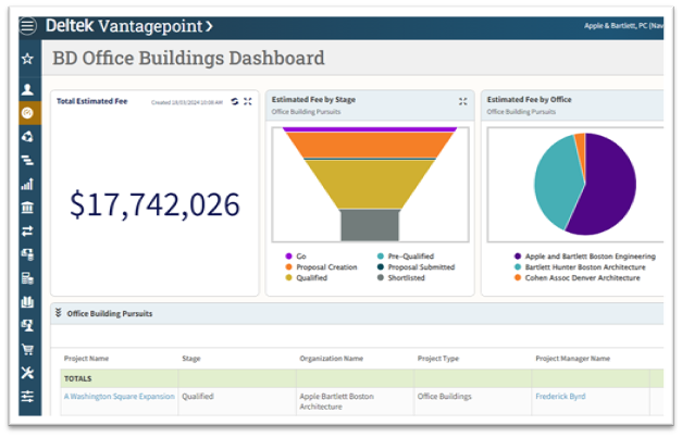 - Clear Visuals: Funnel charts provide a straightforward, at-a-glance understanding of your business development and pursuit pipelines.