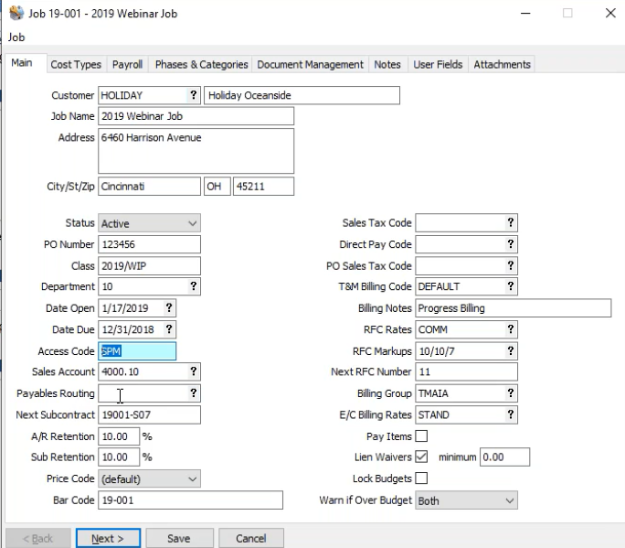 Job Costing can be configured for individual users. Instead of requiring project managers to have to include their class code just to view their own projects’ reports every time, program D+CE to include their Job Access Code. To do so, include an Access Code to each individual job and communicate that with your project managers. By doing this, it allows faster and easier access from your employees.