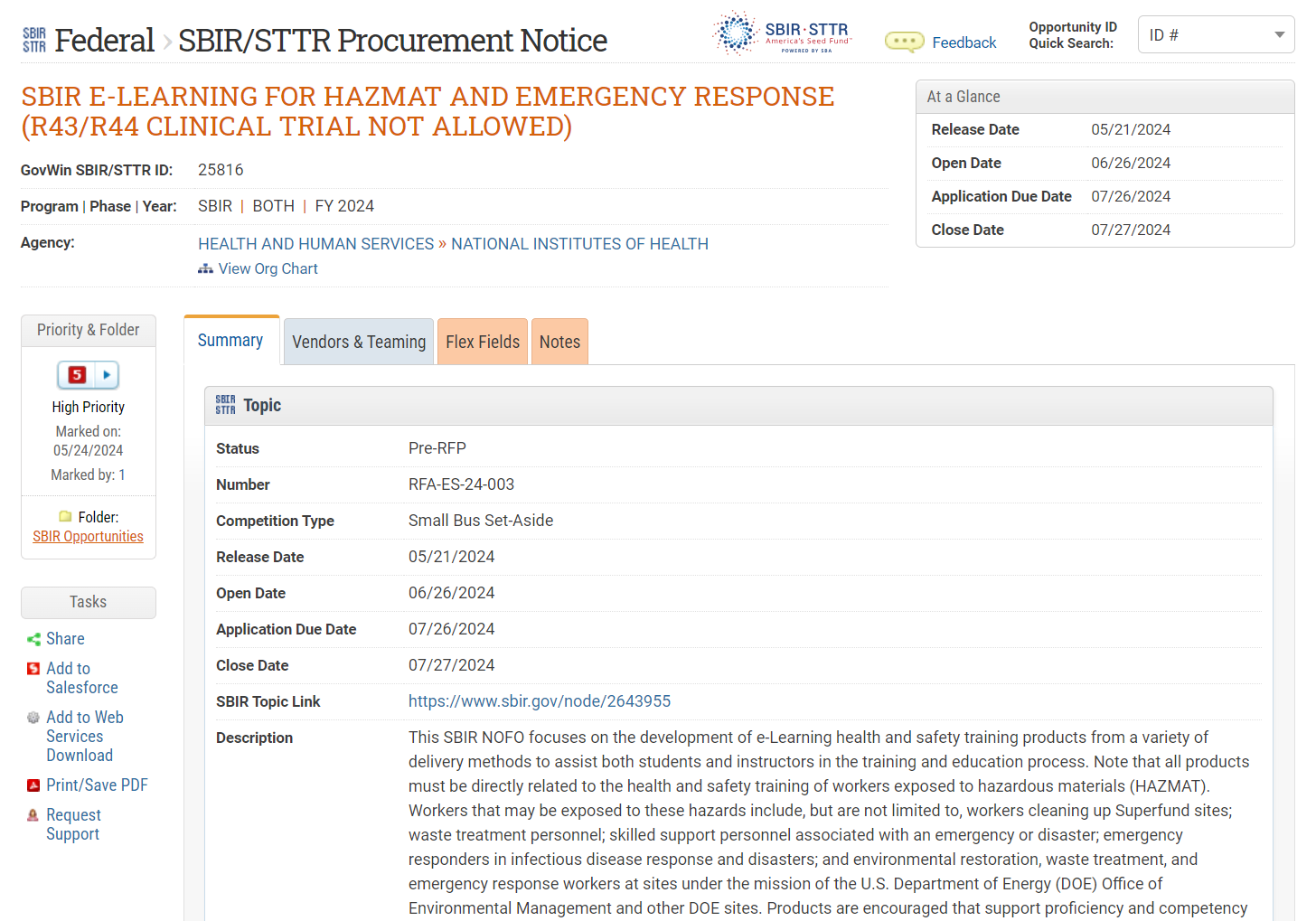 GovWin IQ expanded our opportunity database to include Small Business Innovation Research (SBIR) and Small Business Technology Transfer (STTR) notices this year. This addition allows users to easily search, identify, and share SBIR and STTR leads from the same solution they’re building SAM and APFS pipeline for a single source of lead identification. This allows users to zero in on actual opportunities without navigating extraneous non-bidding informational solicitation and topic levels with opportunity notices at the bidding level within GovWin IQ.