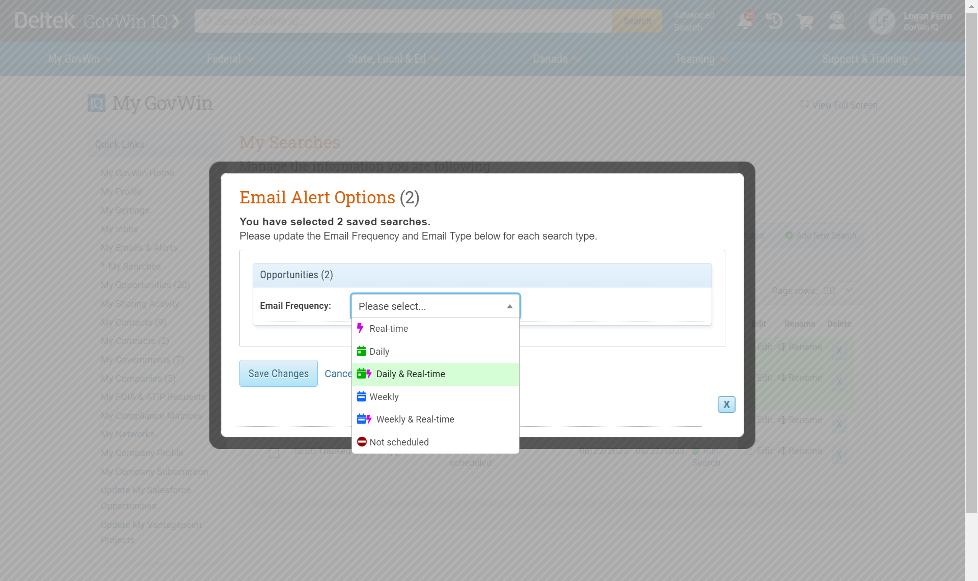 Every minute matters when pursuing opportunities in the public sector. GovWin IQ now notifies users of critical updates in real-time on their marked content and saved searches in-app and via email. Notifications are available for all opportunity types to arm users with the latest news on their contracting opportunities to support their proactive pursuit strategy. These updates are gathered in-app collectively throughout the day and reset the following day with no opt-in required. Users who would like updates via email can opt-in to this delivery style in addition to in-app.