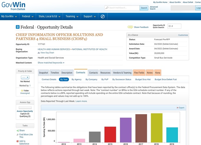 So what do you need to go beyond the basics? Here are a few things that are available to subscribers to GovWin IQ’s federal market intelligence that can help vendors in finding federal contracting opportunities, and putting themselves in the best possible position to compete for and win business from the government.