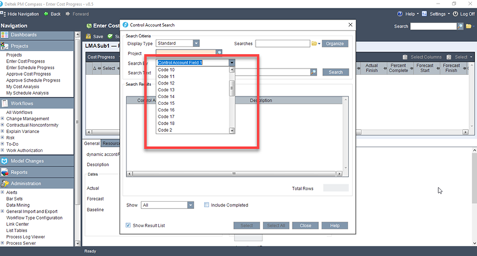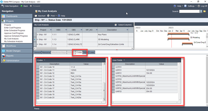 Support for all 20 Cobra Codes—To provide comprehensive support for control account codes and work package codes, users can now display all 20 codes in various areas within the application.