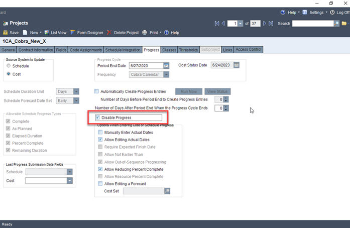 Ability to Disable Progress—Clients can easily disable and re-enable progress for selected projects to allow time analysis and mitigation without concerns about changes to progress entries.