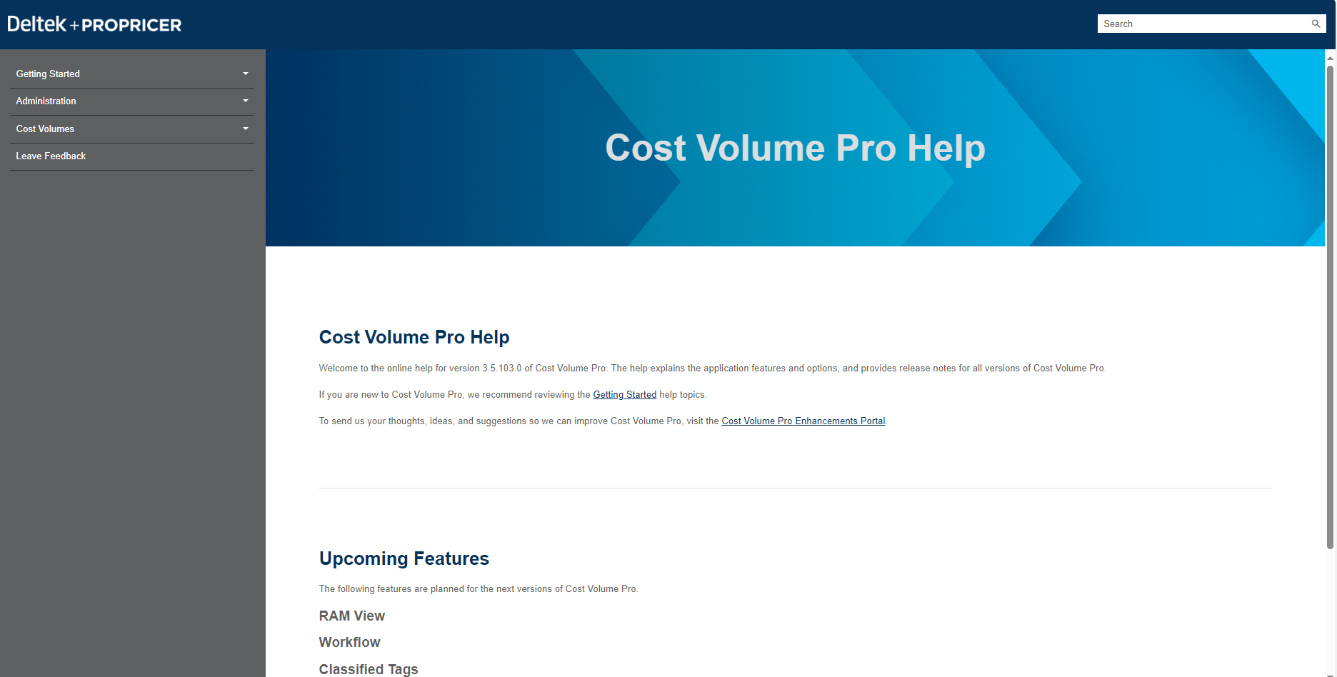 Cost Volume Pro 3.5.104.1 will see an update to Deltek branding as well as the creation of a dedicated Help Website, enhancing our built-in support for users. Now all users will be able to click the help icon to see contextual help on any screen they’re on.
