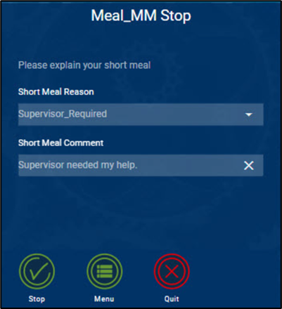 Shop Floor Time automatically calculates the end time and meal breaks based on the start time and hours worked entered by the employee
