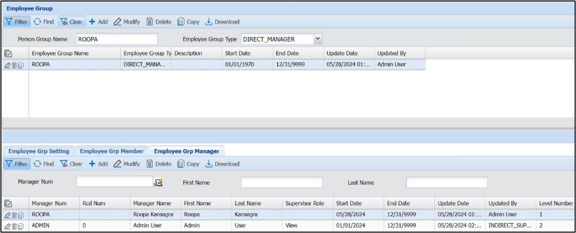 Persons one to two levels about the Supervisor can now view their "Indirect Employees”