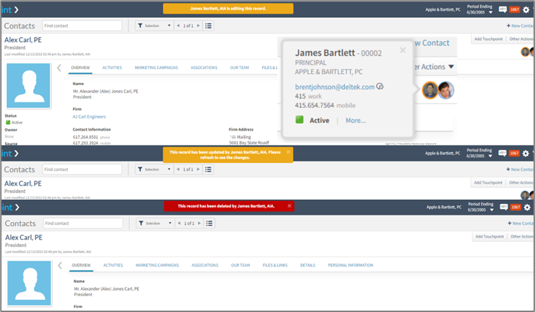 - See notifications when multiple users are viewing or editing a hub record so users can better coordinate changes